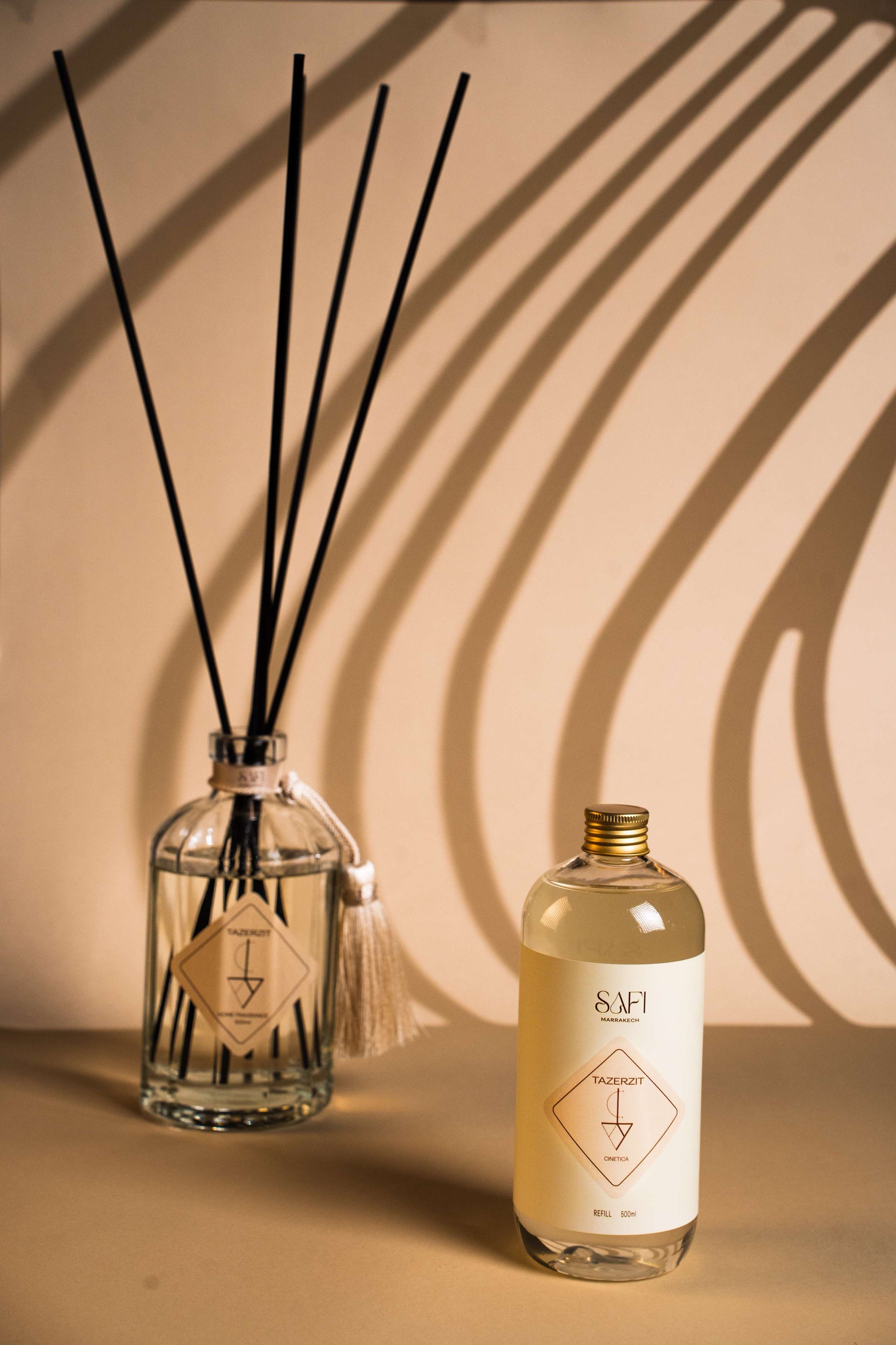 Un omaggio alla cultura berbera, Tazerzit prende il nome dalla fibula o spilla, simbolo prezioso del gioiello berbero e antica rappresentazione del movimento armonioso del corpo femminile. Questa fragranza celebra la grazia e la forza con una composizione fiorita e legnosa.